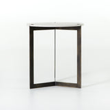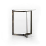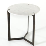 Opposites do tend to attract. A leggy base in hammered brass iron plays up a refined, precisely-shaped polished white marble top. Perfect in pairs.