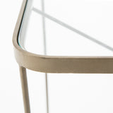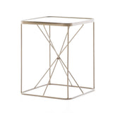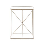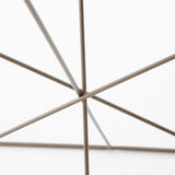 Modern geometrics play with antique brass in this fascinating end table. Radiating lines create a sense of simplified, airy space without feeling stark.