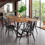 A clean, modern take on the traditional Windsor dining chair. This tall beauty is wire-brushed to bring out the cathedral grain in the oak, and available in 3 finishes - Black Oak, Heritage Oak or Sandy Oak.