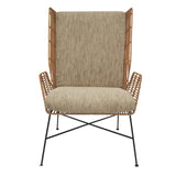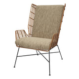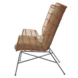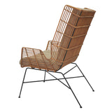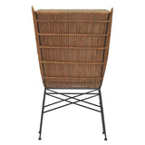 Clean, contemporary shaping and an updated weave transform rattan into something modern. This unique take on the rattan chair is supported by a contrasting black metal base.