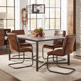 Incredible, on-point style with wire-brush distressing and a warm finish paired with solid wood construction and metal detailing- bring this table into any dining room for an instant upgrade.