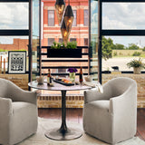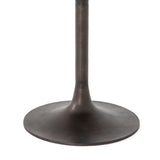 Classic tulip shaping in textural cast-aluminum makes for a modern bistro table. Finished in antique rust to bring out alluring highs and lows. Great indoors or out — cover or store indoors during inclement weather and when not in use.