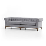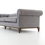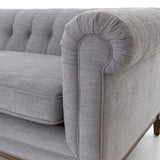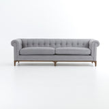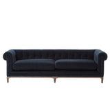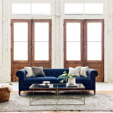 A formal frame inspired by the Chesterfield becomes casually comfortable. The Griffon sofa is available in two fabrics - Plush Navy + Lake Pewter.
