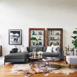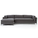 Flexible style, luxurious comfort and family-friendly upholstery. Clean, simple lines and black iron base keep everything casual and chic.