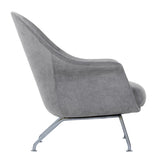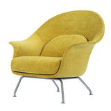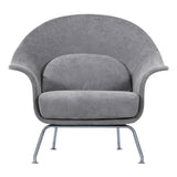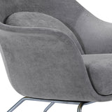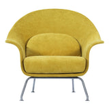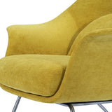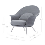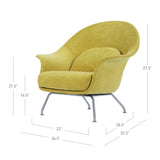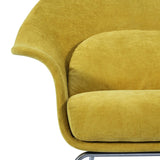 Curvy and voluptuous, the Chiara Chair makes a statement in any room. The chair is low-slung with brushed stainless legs and a contemporary style that will work well in any modern décor, from a mid-century ranch to a city loft apartment. Some assembly required.