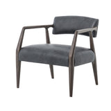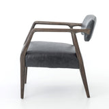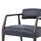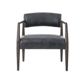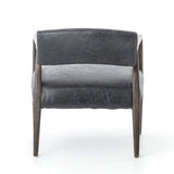 An angular, dark and smoky birch frame holds a deep seat and striking, low-slung back. Covered in black, top-grain leather.