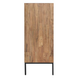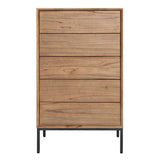 Rustic Modern drawer bed set constructed of solid Mindi wood in a tiled arrangement panel, propped on minimalist powder coated steel legs. Includes push-to-open runners mechanism for soft open and close drawer slides.