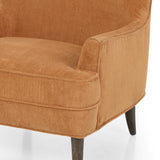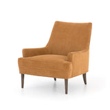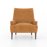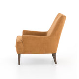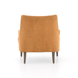 Mid-century shaping offers comfortably molded curves to the wing chair. Handpicked hides and hand-staining techniques celebrate the natural hallmarks of nature. Soft sienna upholstery pairs with classically tapered parawood legs.